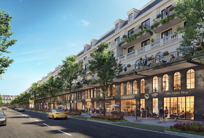 Phối cảnh dãy shophouse hiện đại của khu đô thị Ngôi Sao Stella Mega City.