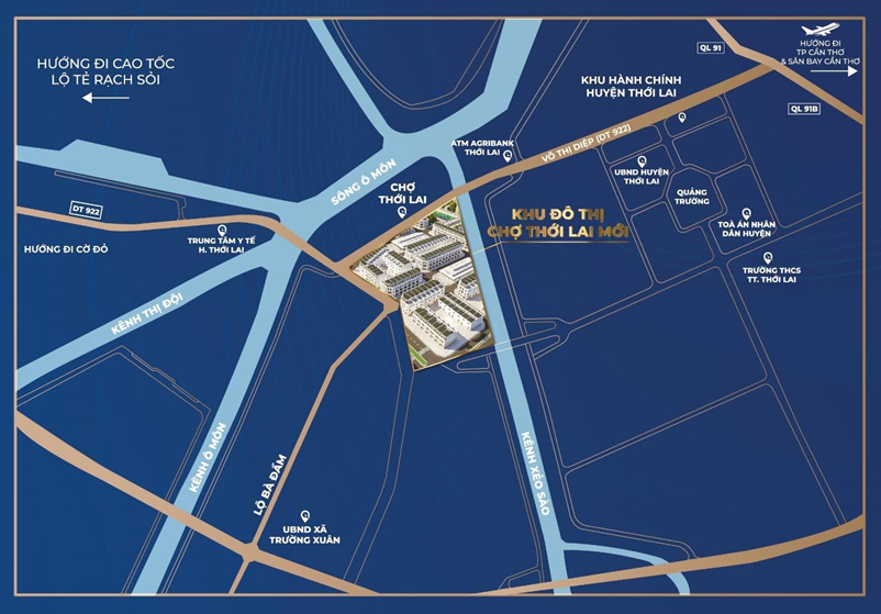 Sơ đồ vị trí Khu đô thị chợ Thới Lai mới ngay trung tâm hành chính huyện